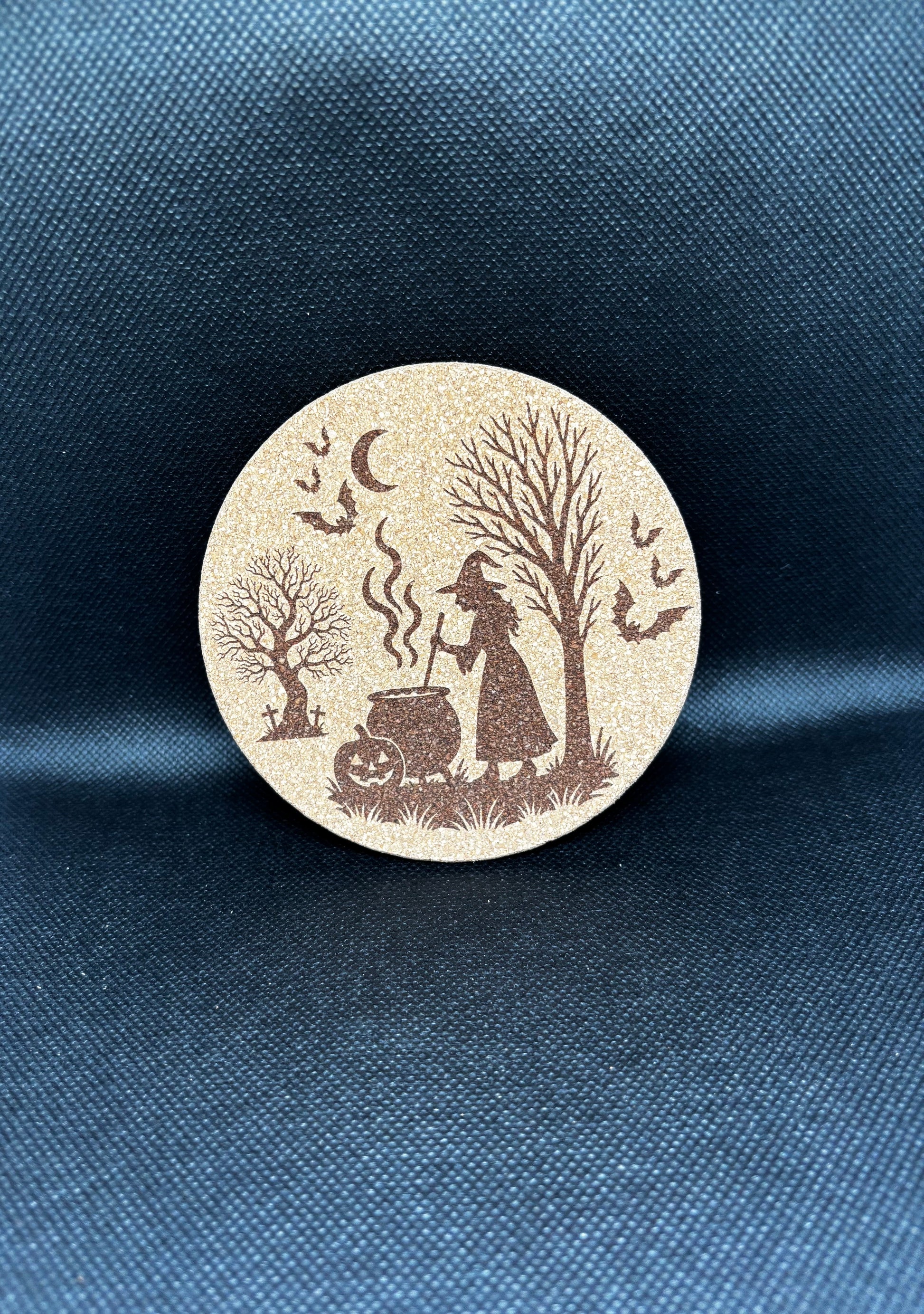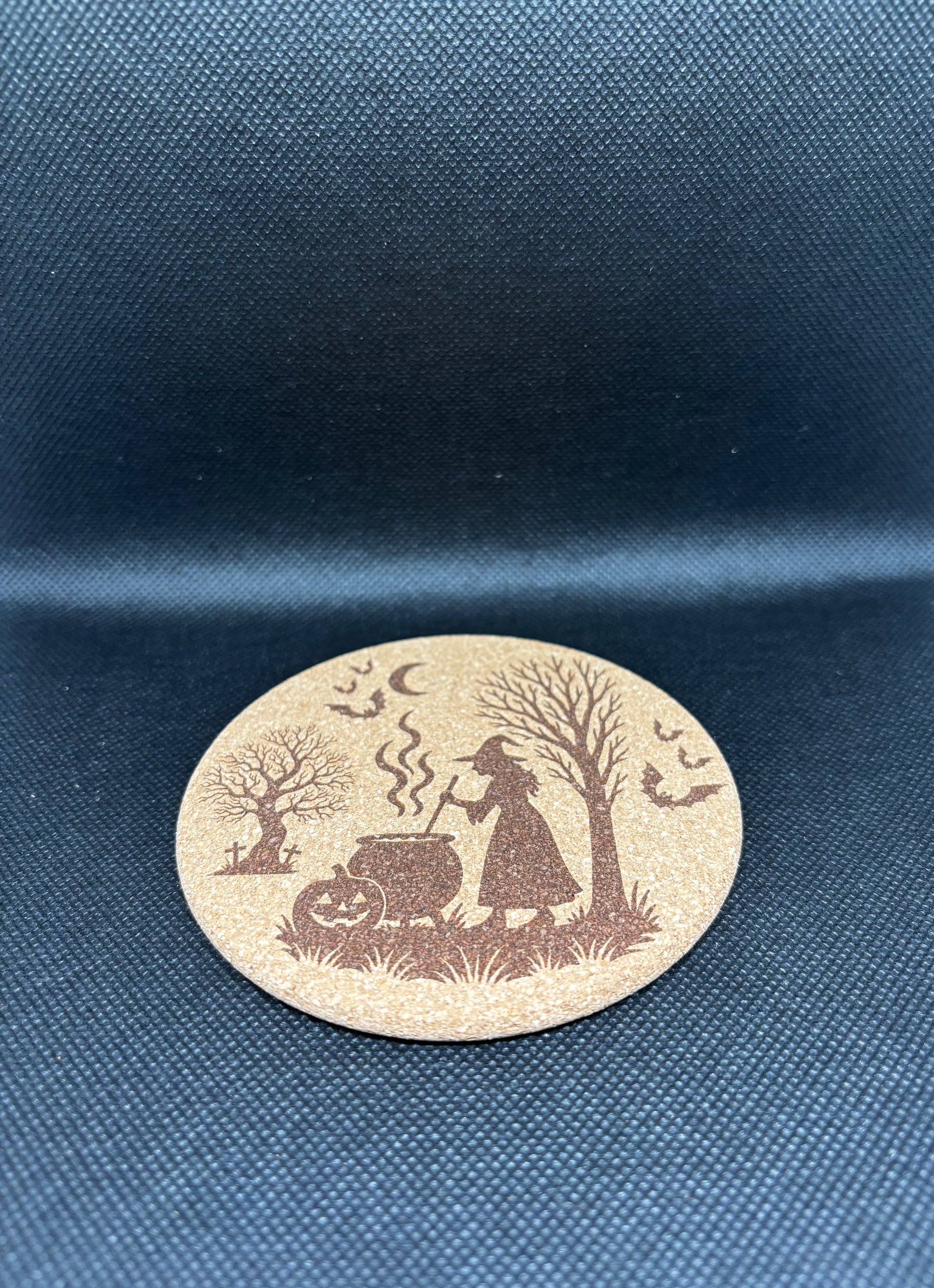 Гравирана подложка за чаша от корк/дърво Серия "Halloween - Вещица в гората"